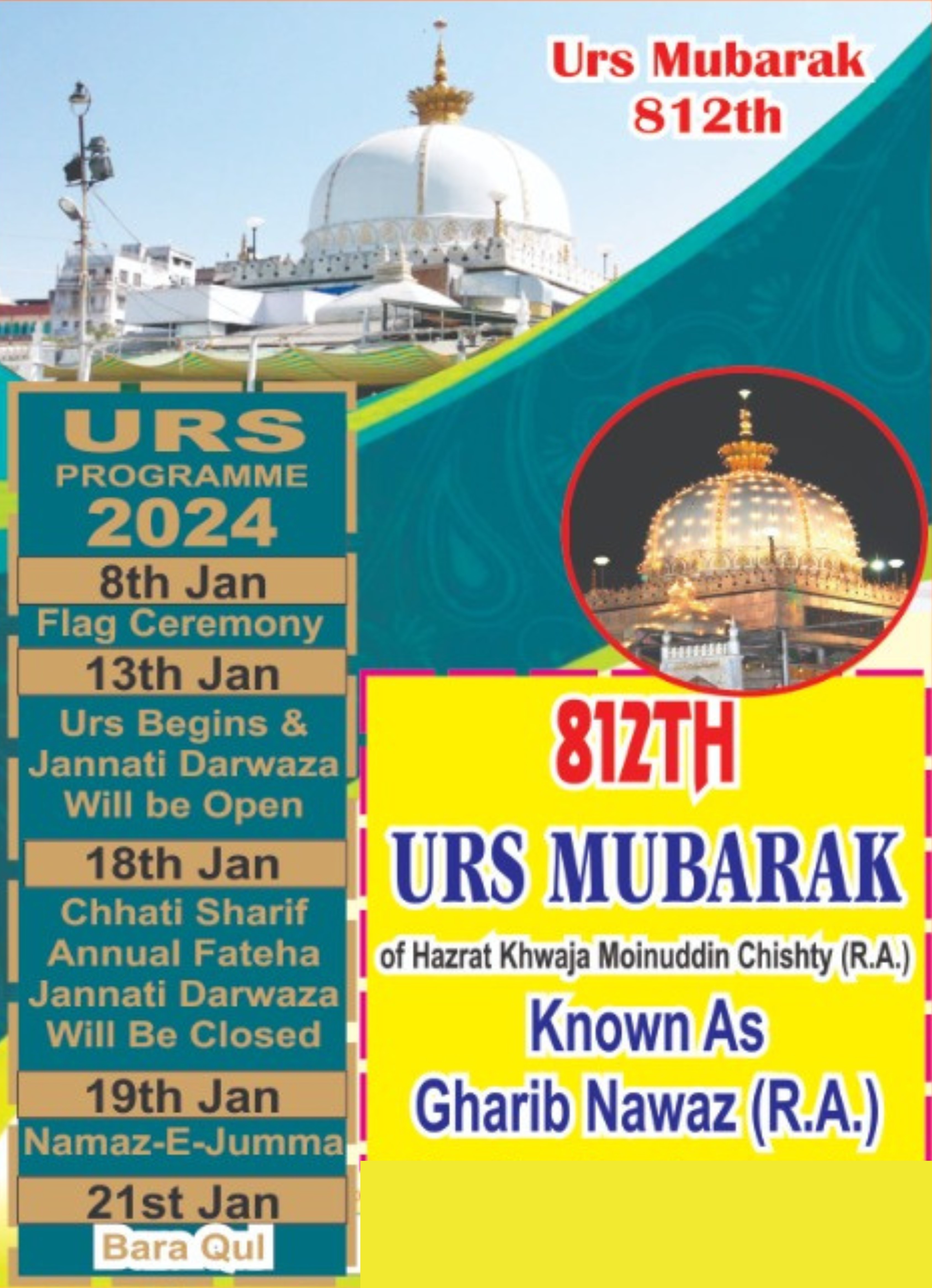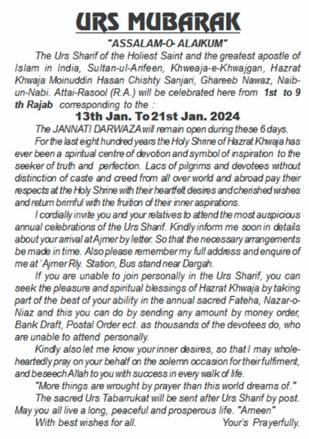 The Urs of Khwaja Gharib Nawaz (R.A.) is celebrated from 1st to 9th Rajab